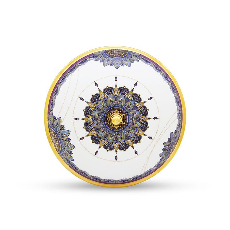 Солнечный узор в красках небосвода, сияет на белоснежном фарфоре коллекции "Принцесса". В волшебное кружево узоров, изящно вплетена золотая корона правительницы, как символ богатства и изобилия. Люксовая коллекция "Принцесса", по праву считается настоящим произведением искусства. Объединяя в себе великолепный фарфор и столовый текстиль, она создает неповторимую атмосферу праздника, достойно представляя индивидуальность и утонченный вкус обладателей. Роспись кружевнного орнамента выдержана в фиолетово-голубых тонах, что подчеркивает благородство и аристократичность коллекции. Коллекция выполнена из премиального фарфора Premium Porcelain, декорирована золотой деколью и расписана природными минеральными красками. Скатерти и салфетки, раннеры и плейсматы, как важные элементы декора, прекрасно дополнят праздничную сервировку стола. Они повторяют и развивают тему сияния солнечных узоров коллекции, добавляя изысканности и элегантности к общей композиции. Коллекция "Принцесса" позволяет собрать индивидуальную комплектацию сервиза по любым вашим пожеланиям и предназначенную для любого повода. Каждый предмет коллекции несет свою уникальность и будет отличным подарком, а столовые и чайные сервизы раскроют всю роскошь искусства правильной сервировки. Приобретая коллекцию, созданную знаменитым брендом Empire, вы привносите в свой интерьер выразительный симбиоз благородных восточных мотивов и элегантности современного светского стиля.